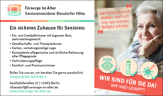 Seniorenresidenz Biesdorfer Höhe bietet Kurzzeitpflegebereich mit 50 Plätzen