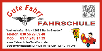 Termine finden nach Vereinbarung telefonisch statt: Handy: 0177/ 24 81 73 9 und Festnetz: 030/56296948