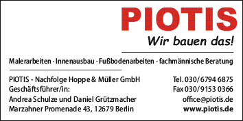 Unser Name "PIOTIS" ist griechisch und bedeutet Qualität! Dies steht für unseren hohen Anspruch an uns selbst und die Arbeiten unsere Mitarbeiter. Bereits seit November 2003 sind wir im Berliner Raum tätig.